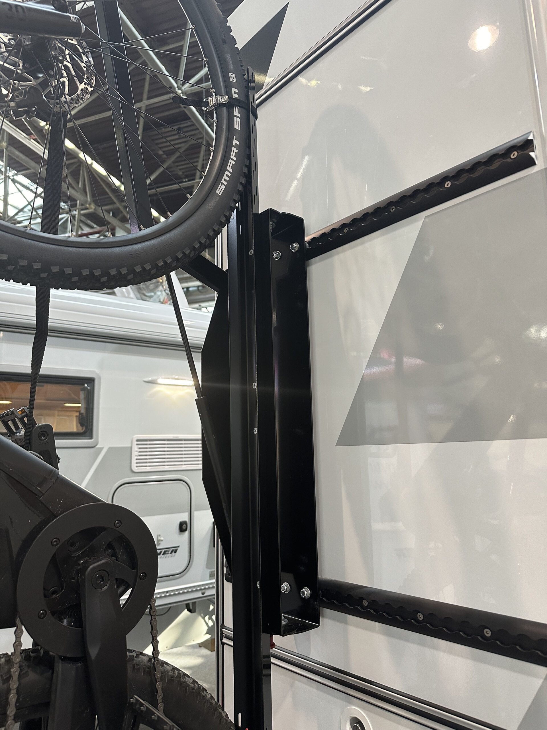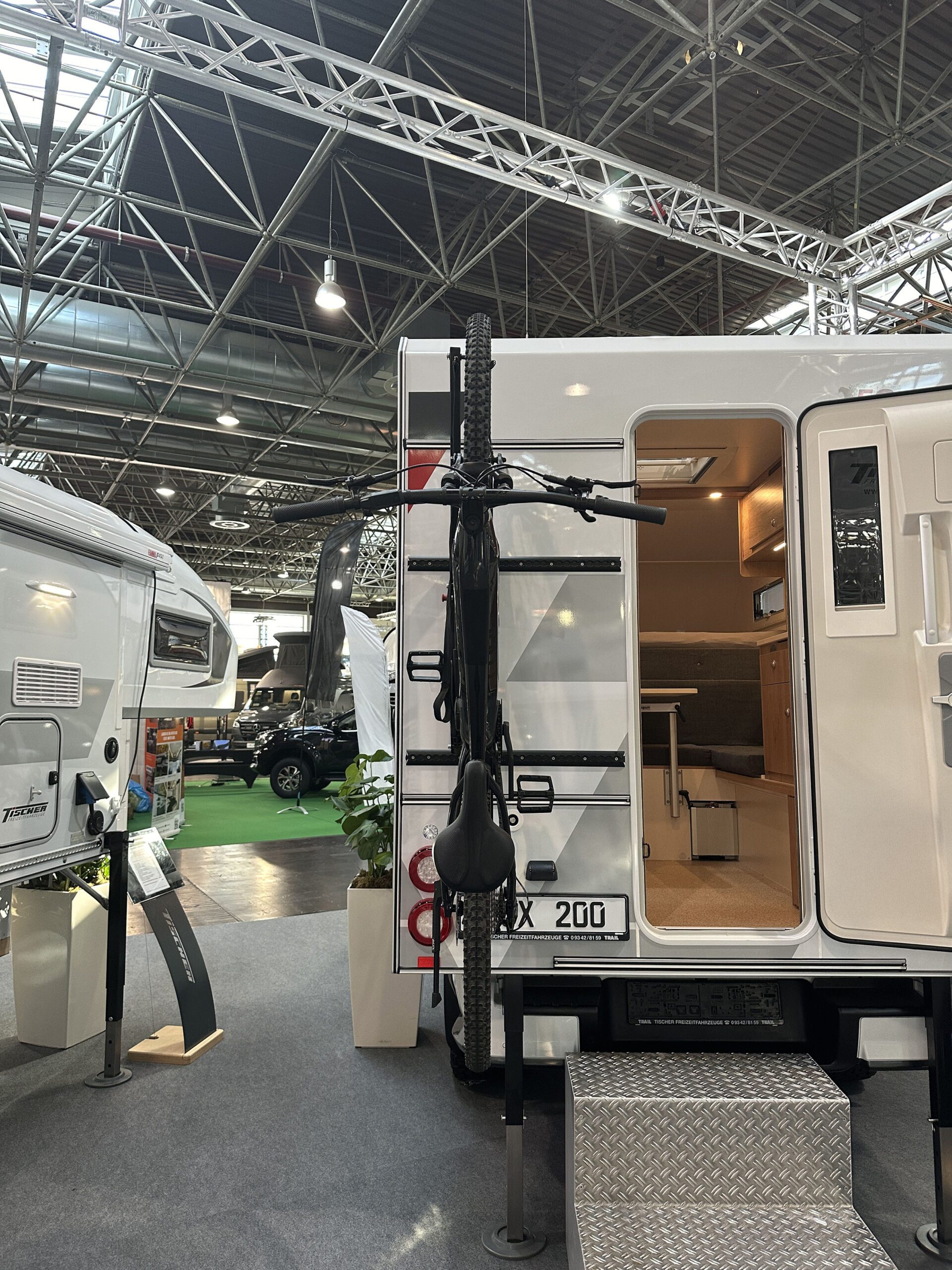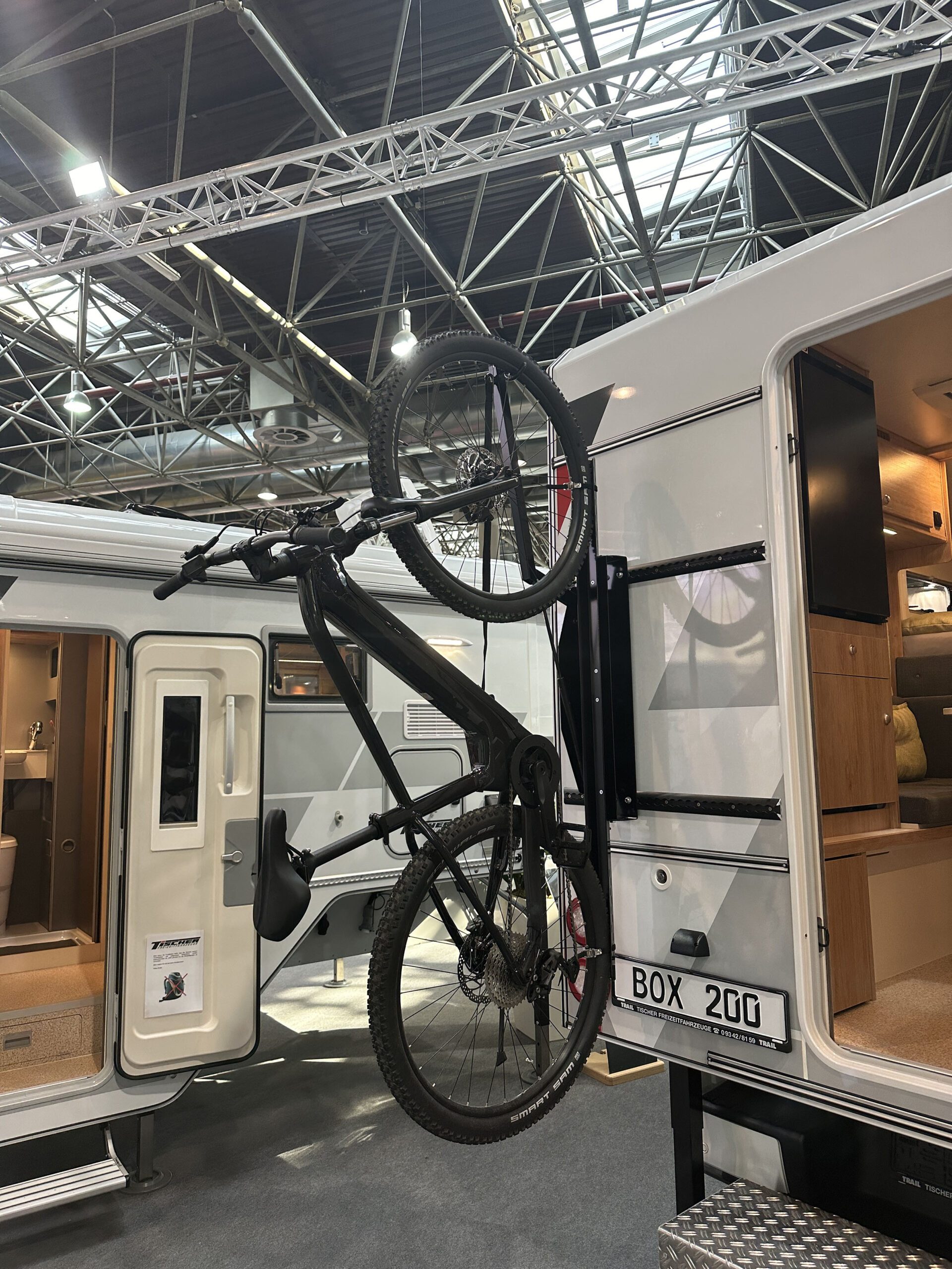 Der Tischer Fahrradträger wurde speziell für unsere Kabinen mit Heckeinstieg entwickelt und wird platzsparend hochkant neben der Tür montiert. Bei Neubestellung Ihrer Kabine ist der Fahrradträger direkt als Sonderausstattung verfügbar. Wenn Sie bereits mit einer Tischer Heckeinstieg-Kabine unterwegs sind, sprechen Sie uns gerne an – wir prüfen individuell, ob und wie sich Ihr Wunsch realisieren lässt.