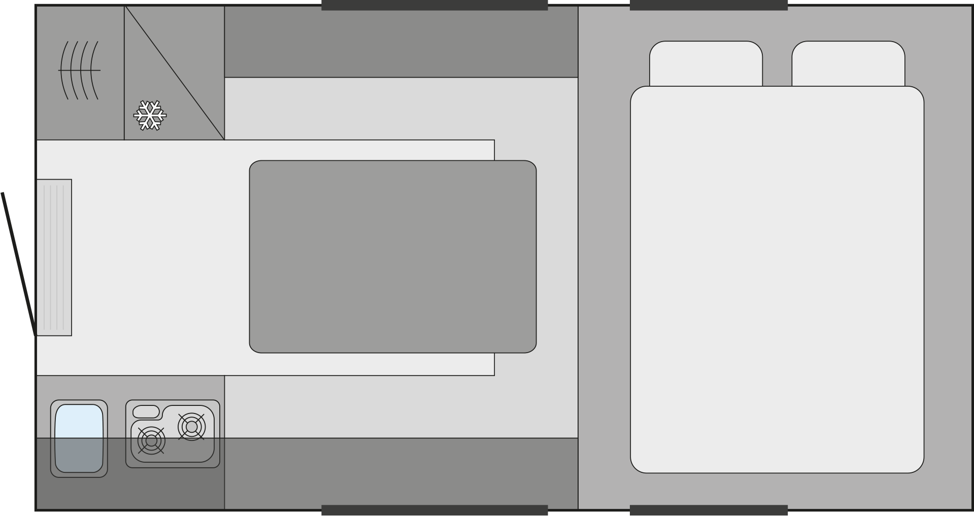 - Stauraum für zwei 5 kg-Gasflaschen, von außen zugänglich