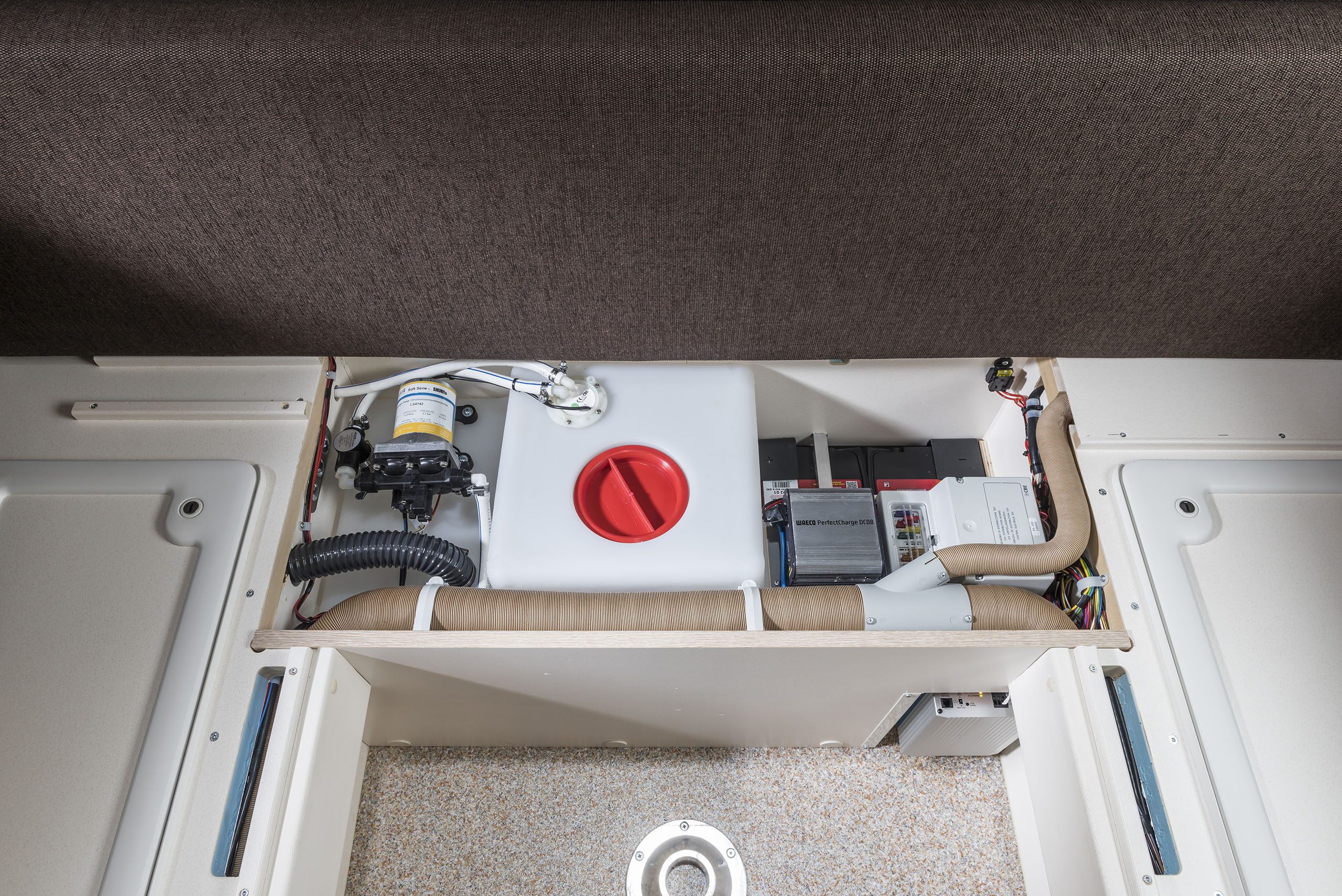 - Frischwasserversorgung über 96 Liter-Tank mit Druckpumpe