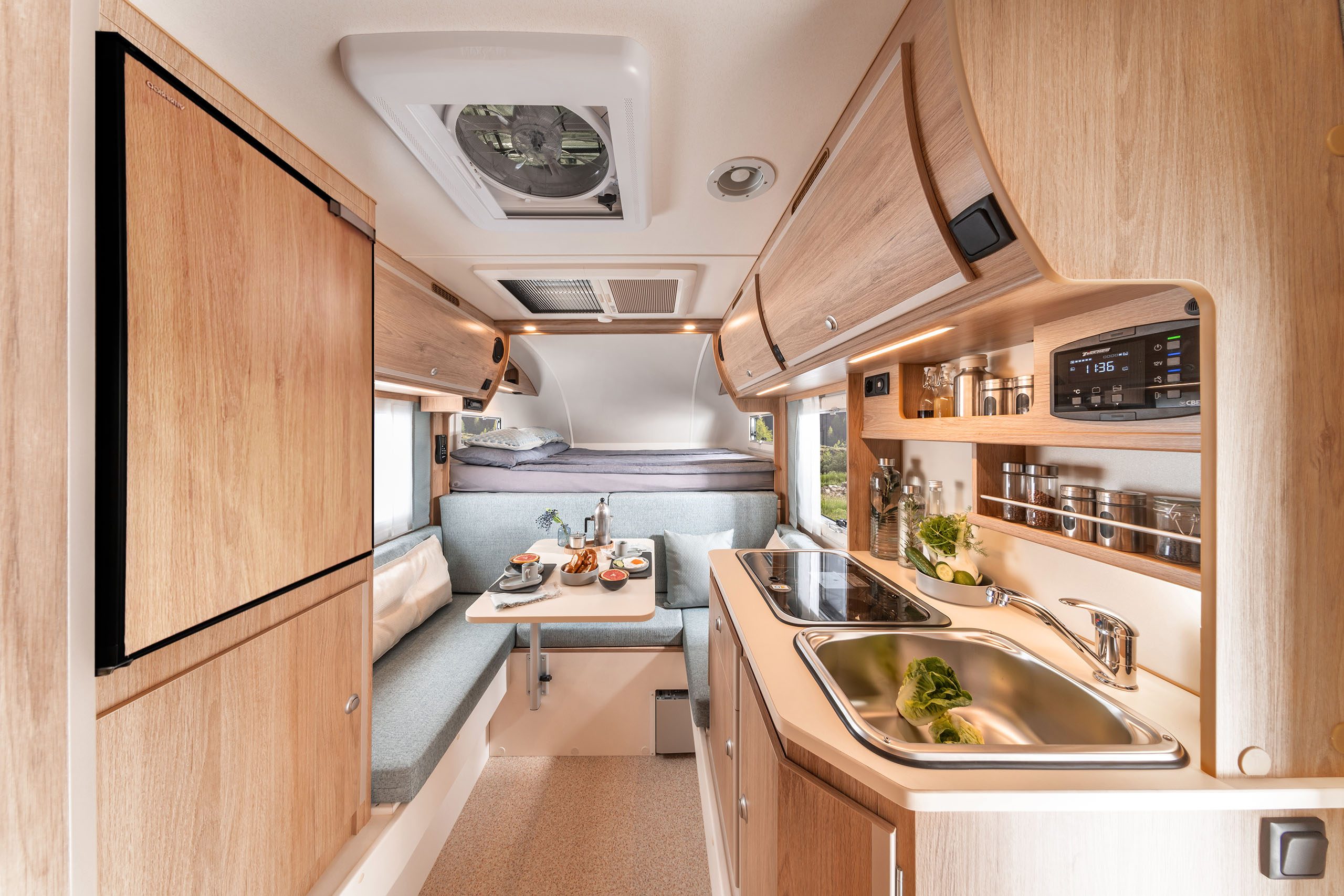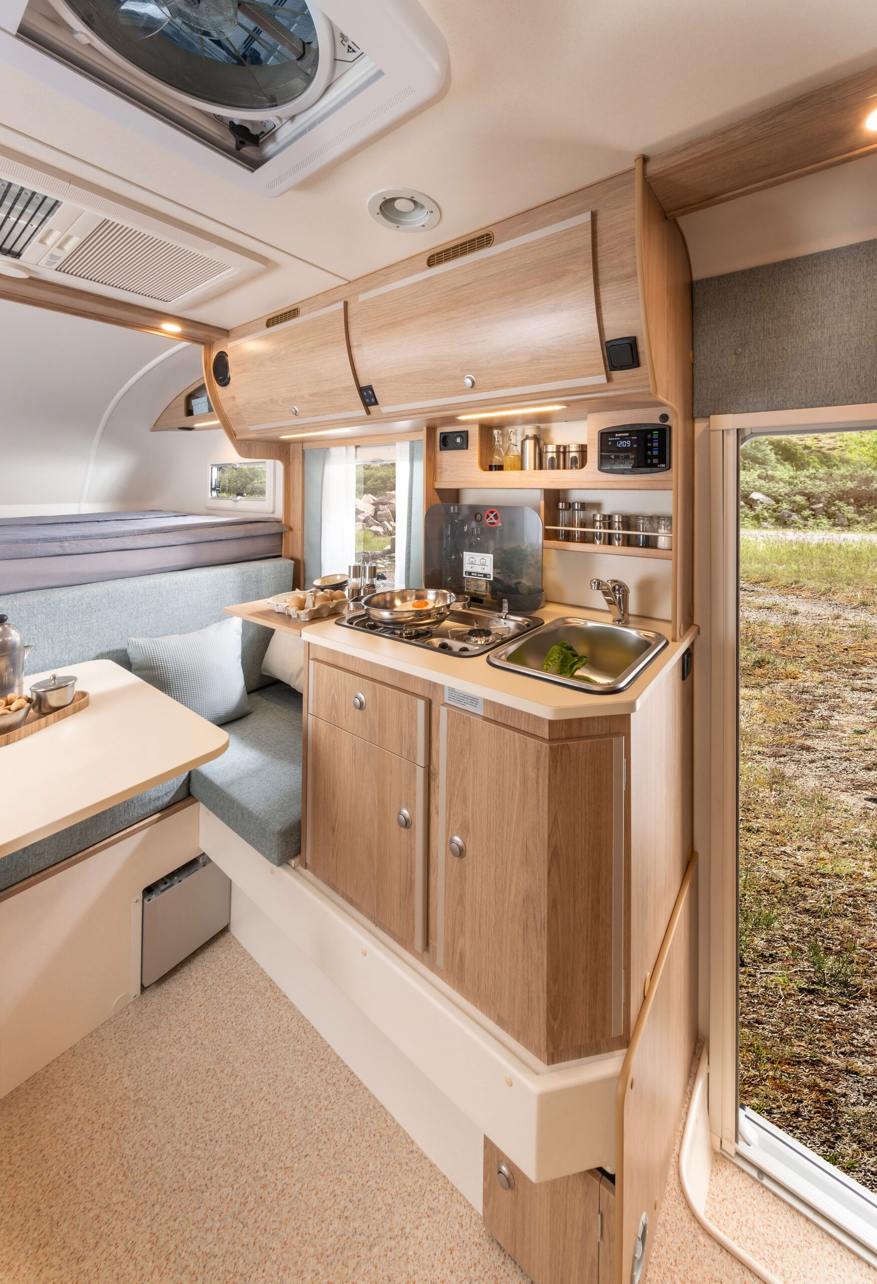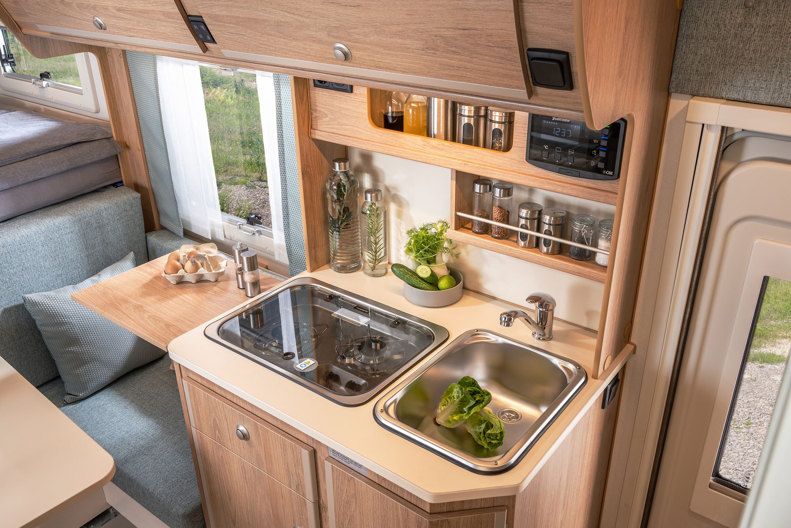 Clever durchdacht wie ein Sterne-Menü: Unsere Kabinen-Küche ist funktional, ergonomisch gestaltet und perfekt an das Leben unterwegs angepasst.
