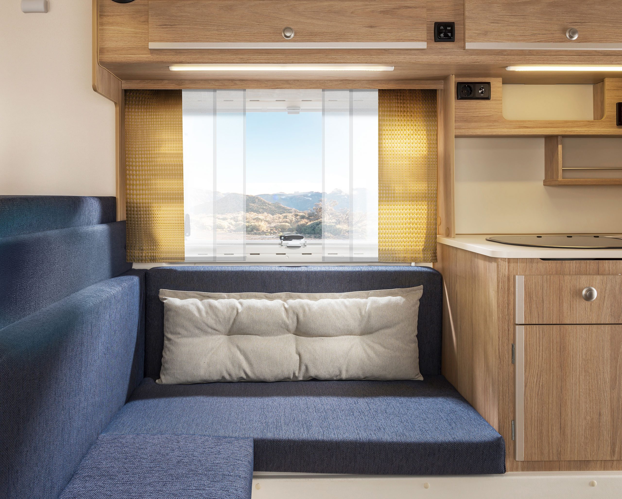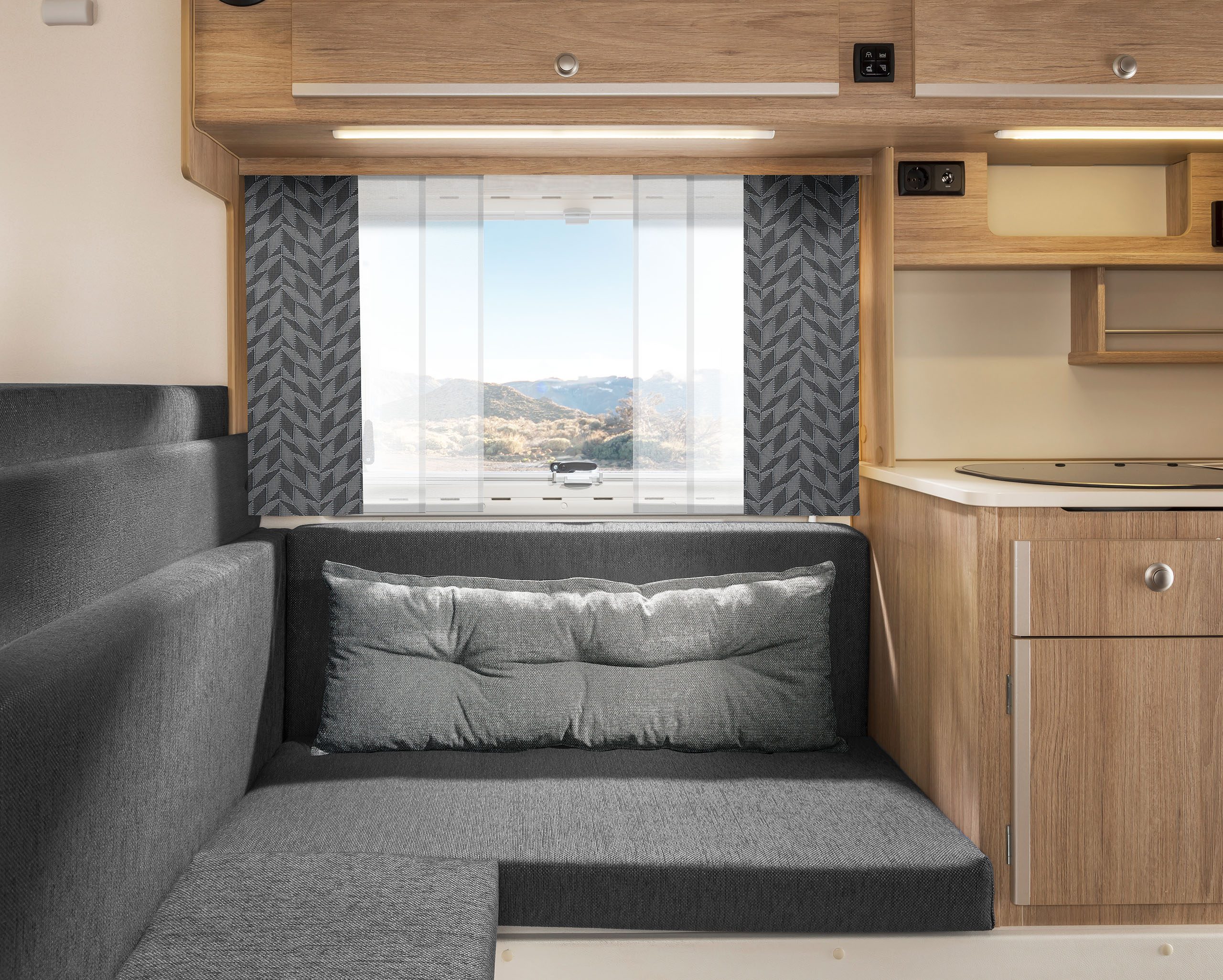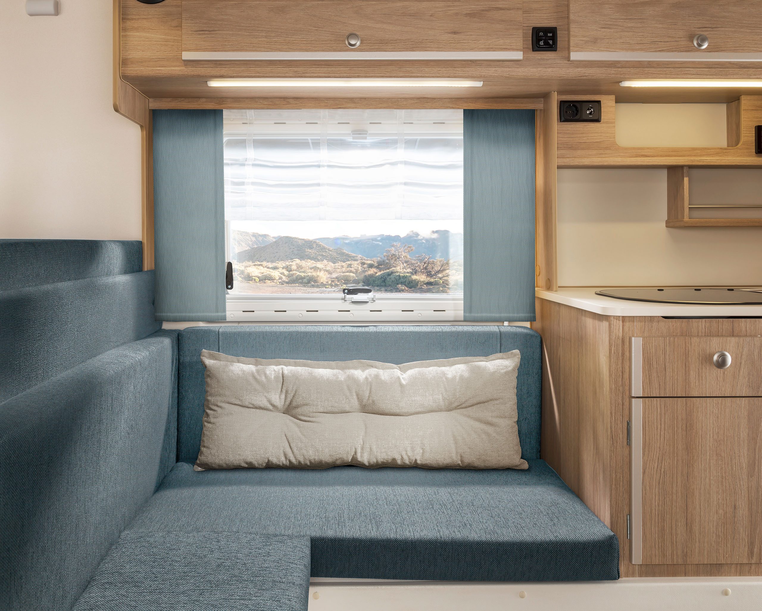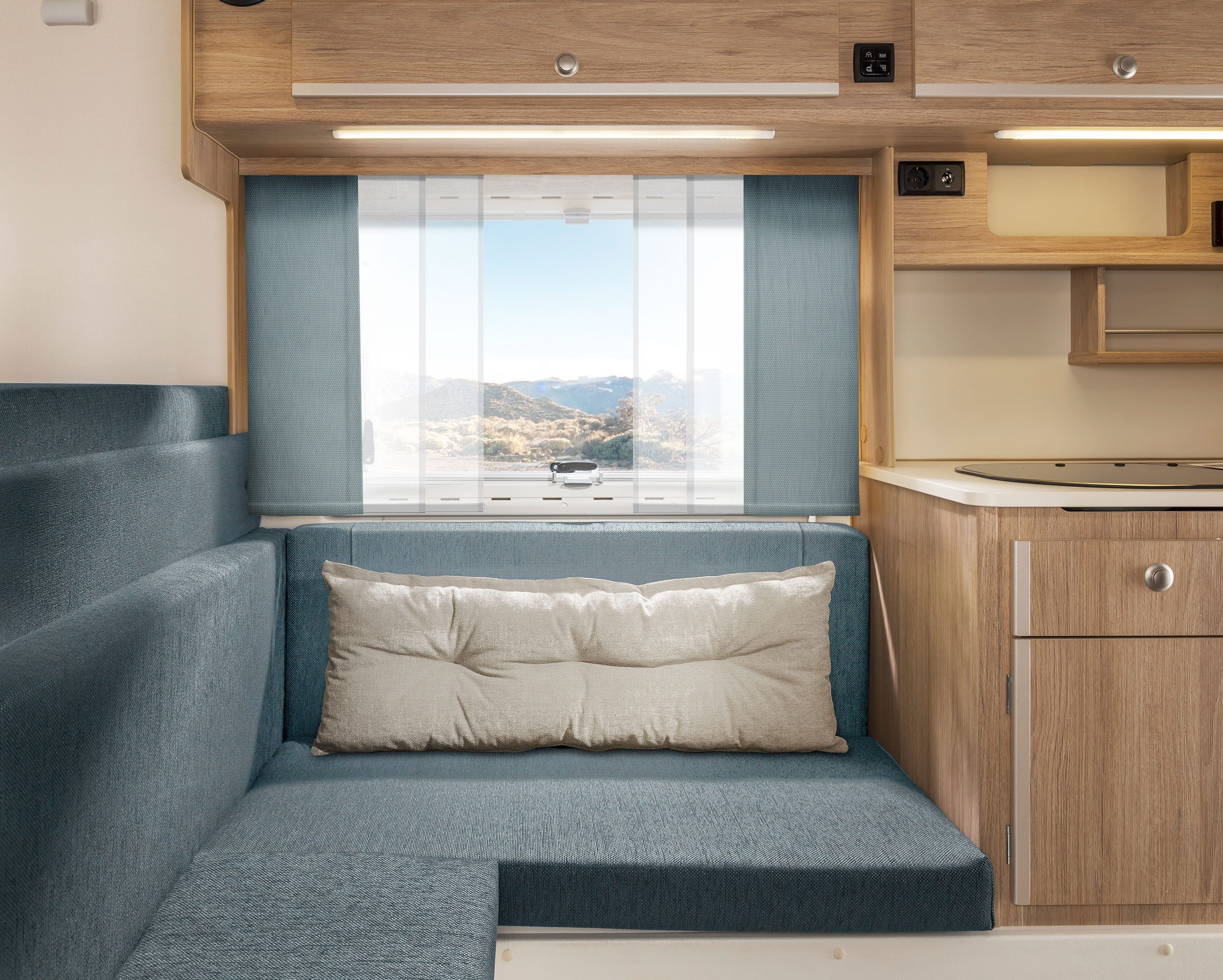 Dabei haben Sie die Wahl zwischen zwischen Heckeinstieg (230) und Seiteneinstieg (230S). Bei der umfangreichen Ausstattung hingegen gibt es keine Unterschiede. Beide Varianten überzeugen durch viel Platz und Komfort, die Stehhöhe beträgt angenehme 1,95 m. Die Küche, vier gemütliche Sitzplätze, ein großes Bett im Alkoven und großzügig dimensionierte Stauräume machen auch lange Reisen zum Vergnügen. Die Sitzgruppe lässt sich mit wenigen Handgriffen zu einem weiteren Bett umfunktionieren.