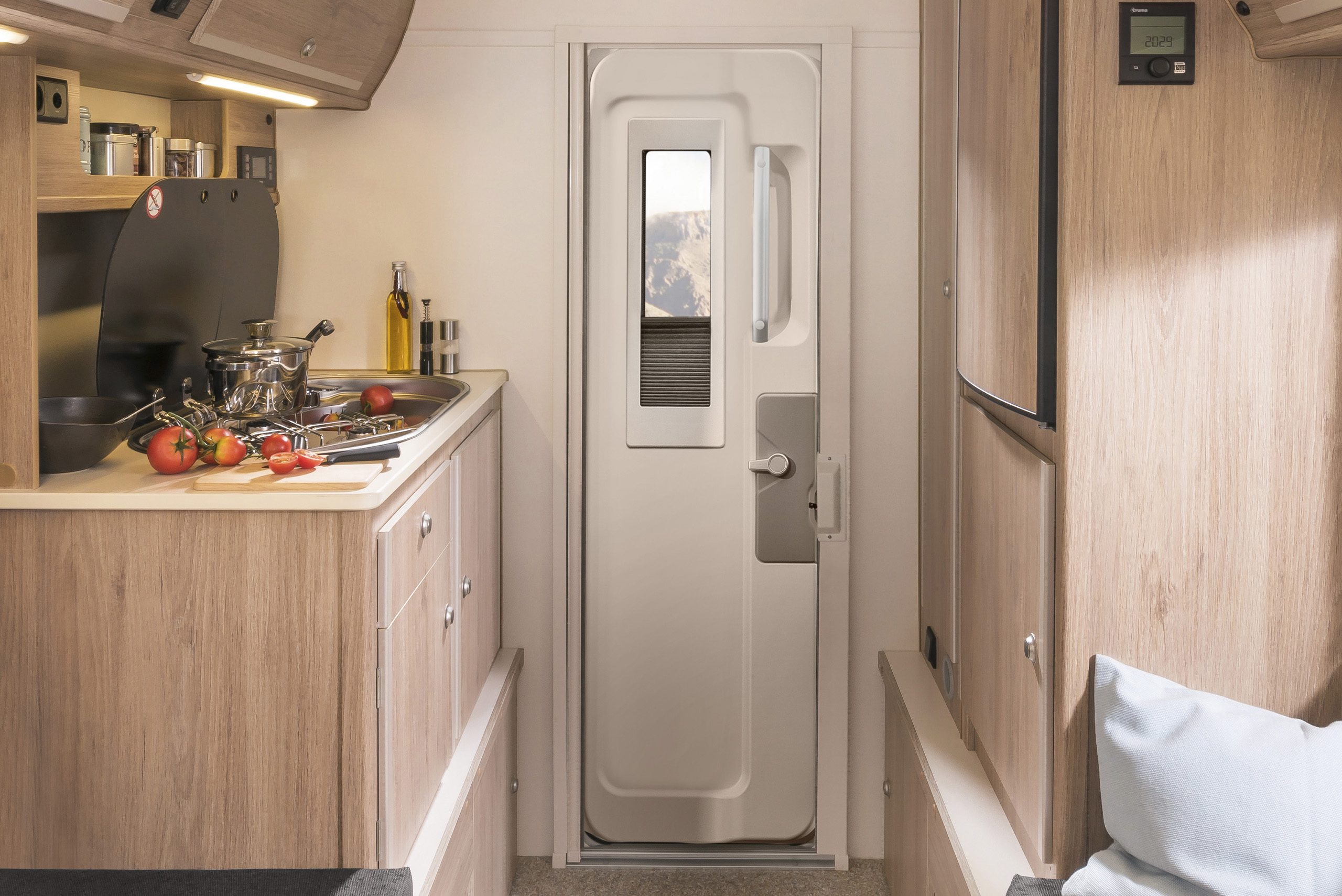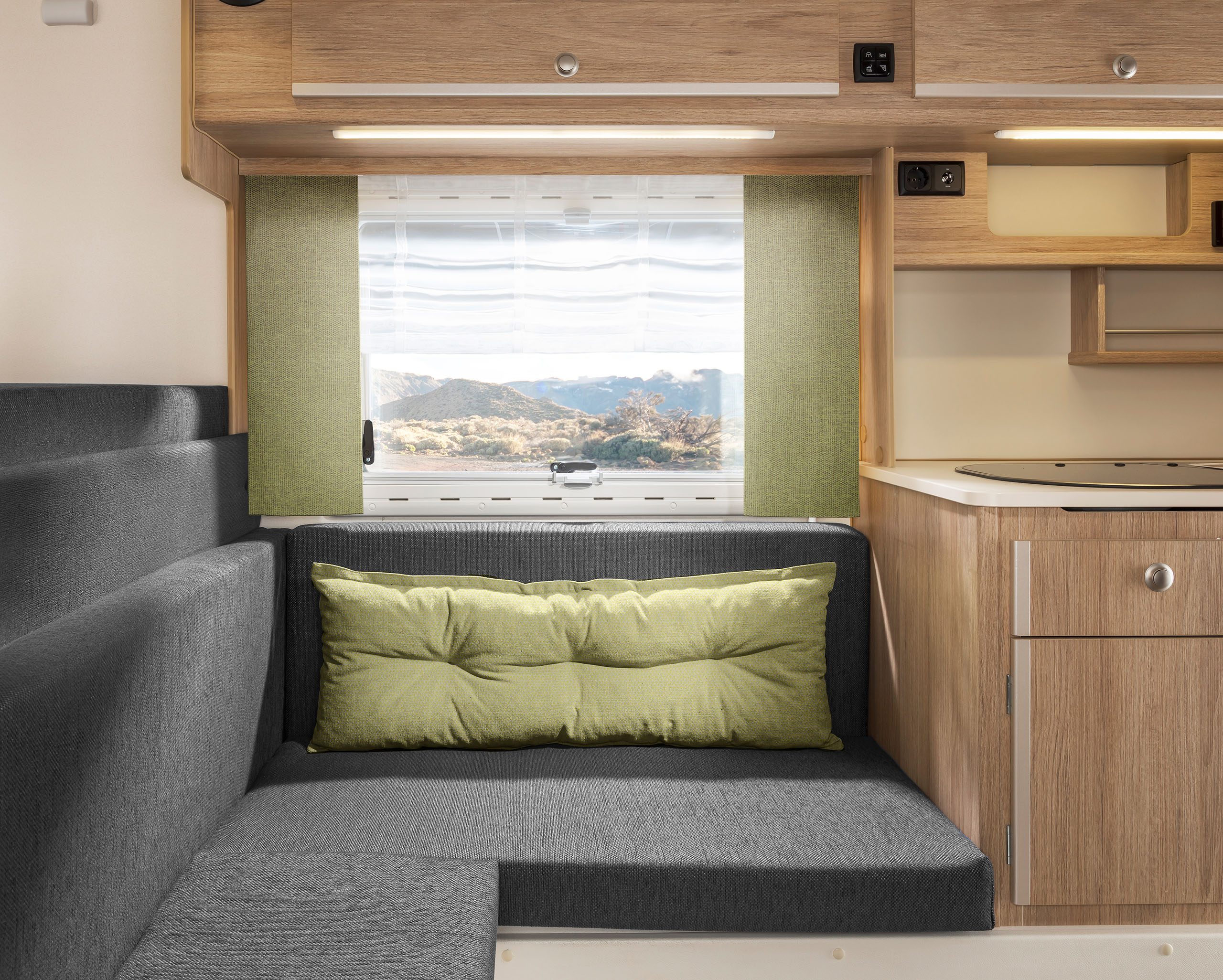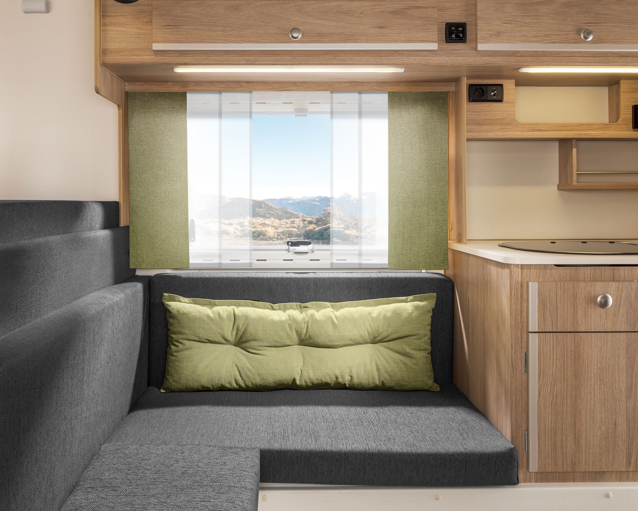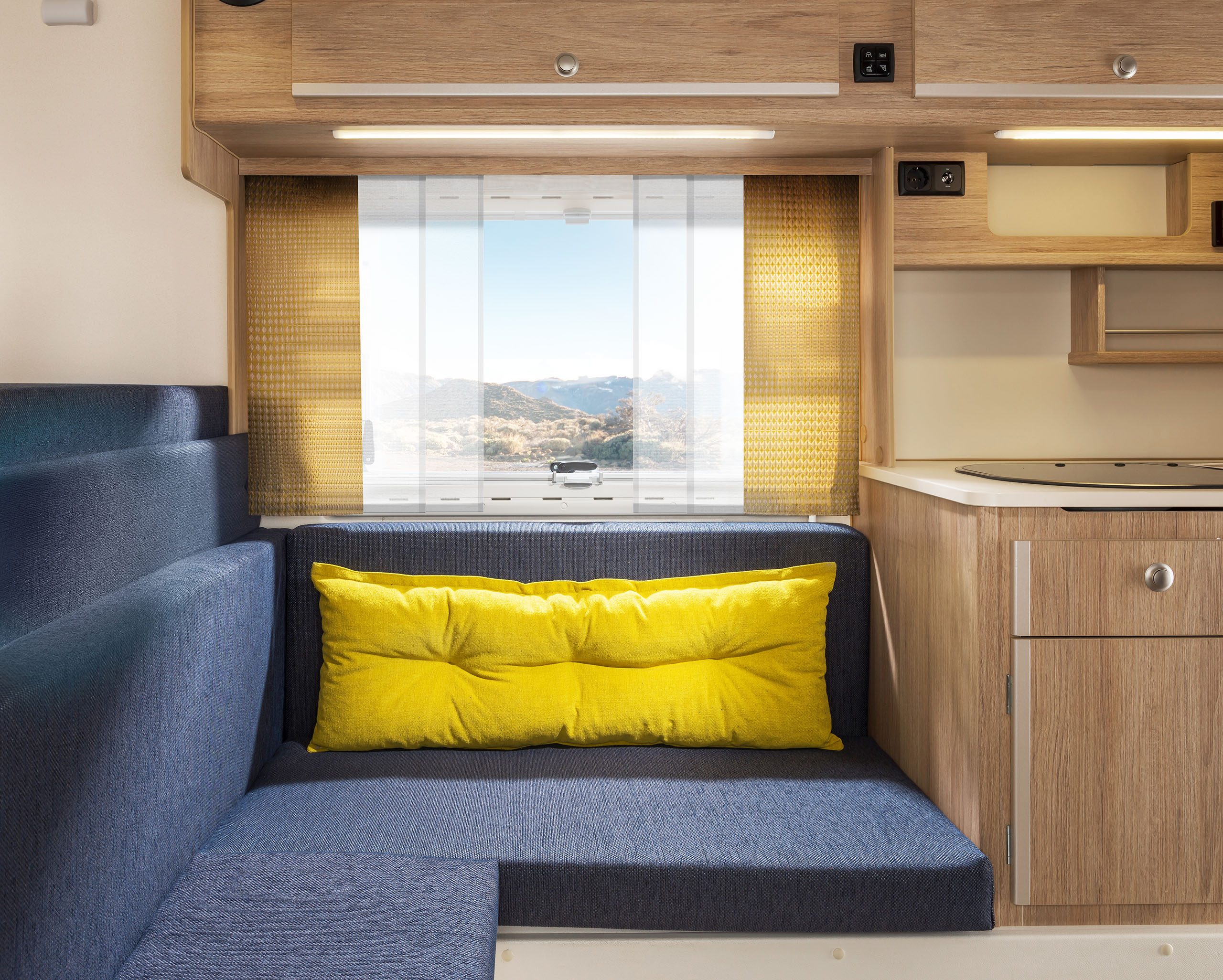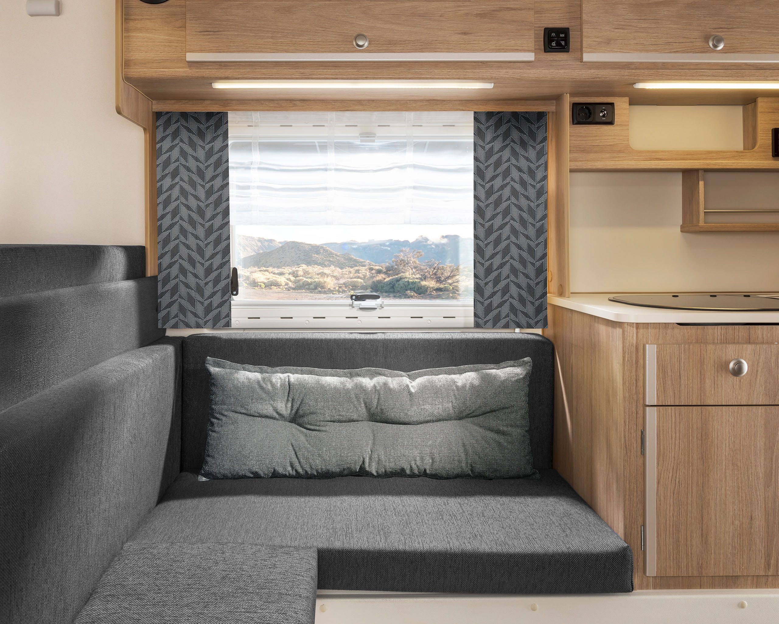 Dabei haben Sie die Wahl zwischen zwischen Heckeinstieg (230) und Seiteneinstieg (230S). Bei der umfangreichen Ausstattung hingegen gibt es keine Unterschiede. Beide Varianten überzeugen durch viel Platz und Komfort, die Stehhöhe beträgt angenehme 1,95 m. Die Küche, vier gemütliche Sitzplätze, ein großes Bett im Alkoven und großzügig dimensionierte Stauräume machen auch lange Reisen zum Vergnügen. Die Sitzgruppe lässt sich mit wenigen Handgriffen zu einem weiteren Bett umfunktionieren.